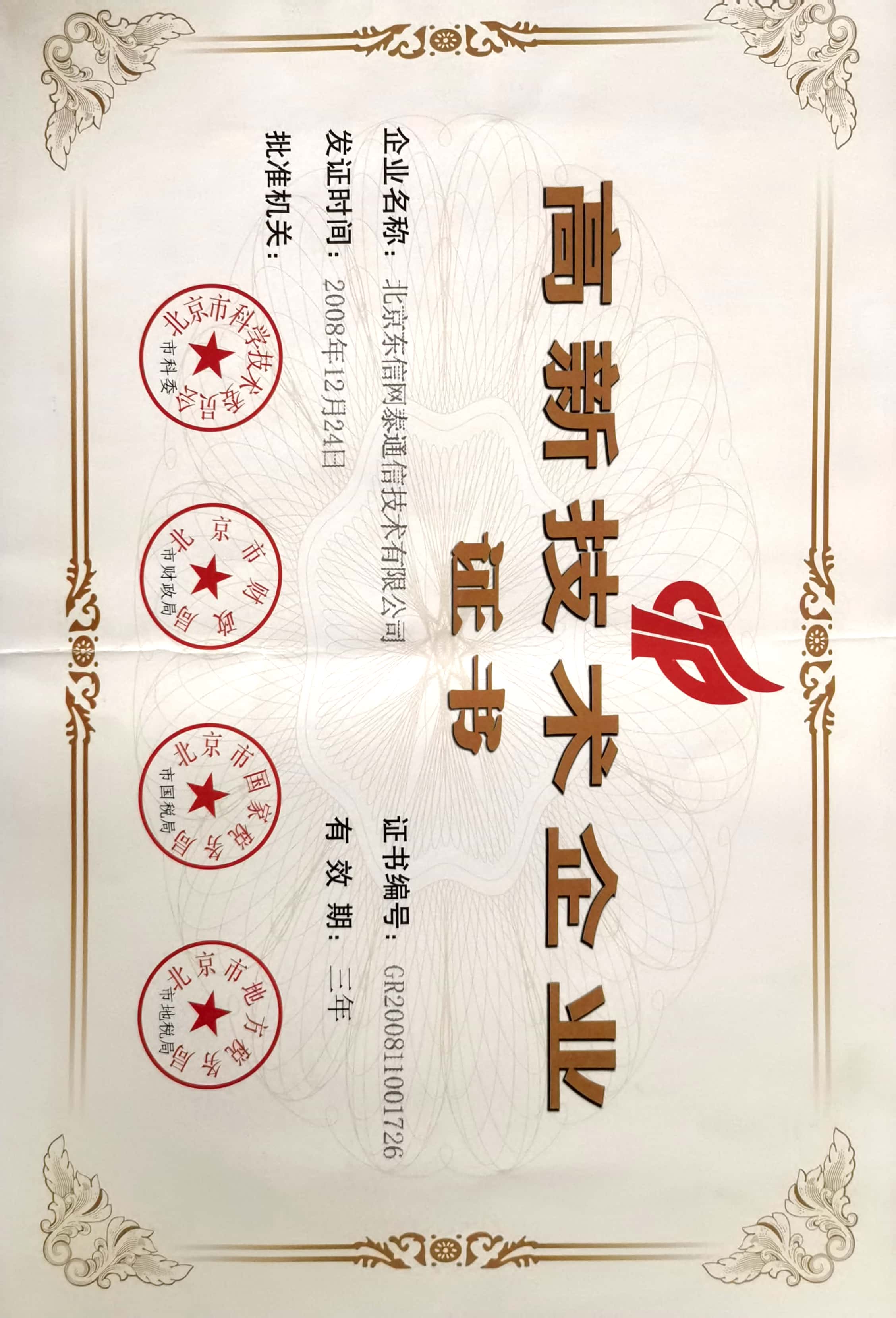 2008年-2022年期间获得的国家级高新企业证书
